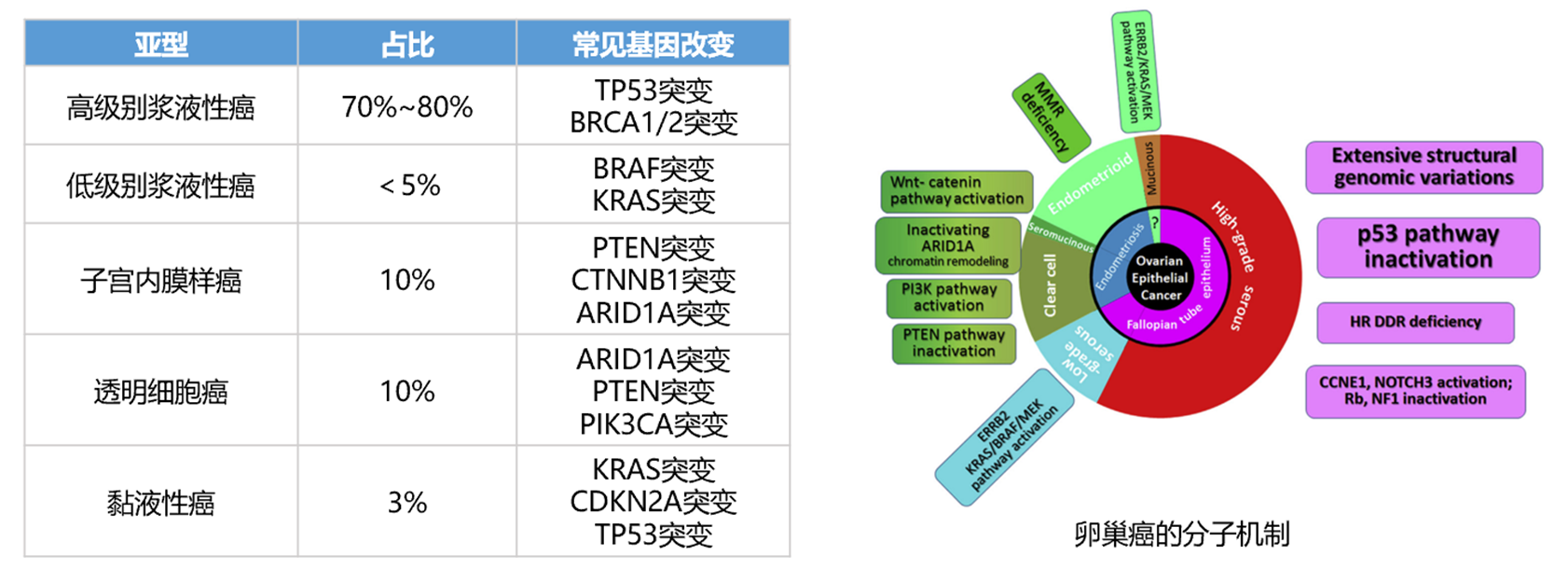 卵巢癌常見病理亞型和相應(yīng)基因改變