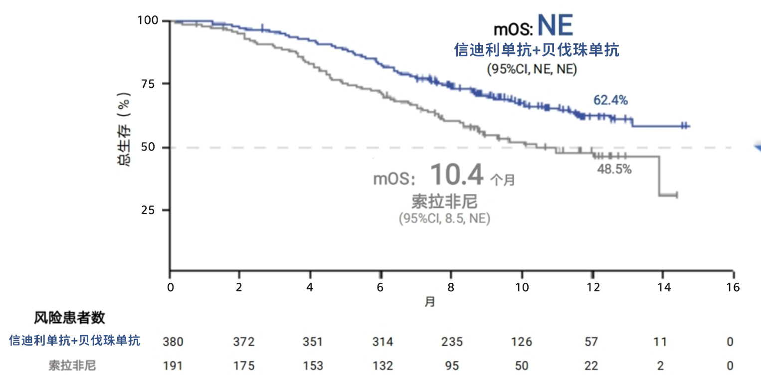 圖2.信迪利單抗聯(lián)合貝伐珠單抗一線治療中位總生存期(OS)